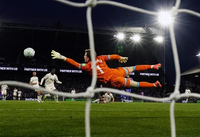 西汉姆联的回应是强化防守韧性。第34分钟,迪恩·亨德森(Dean Henderson)扑出康斯坦丁诺斯·马夫罗帕诺斯(Konstantinos Mavropanos)的近距离头球——这次扑救的价值,在赛后复盘时会被严重低估。